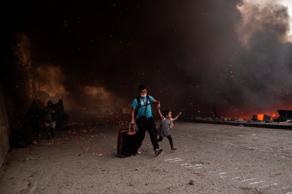 The first fire destroyed the official part of the camp, which housed roughly 4,000 people, ministers said. Another 8,000 lived in tents and makeshift shelters around its perimeter, many of which were badly damaged.