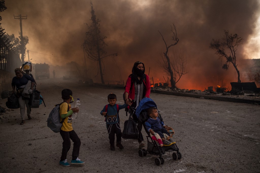 A large fire broke out at Moria, Europe's largest refugee camp on Lesbos in Greece, forcing thousands including many families with children out into the streets with nowhere to sleep.