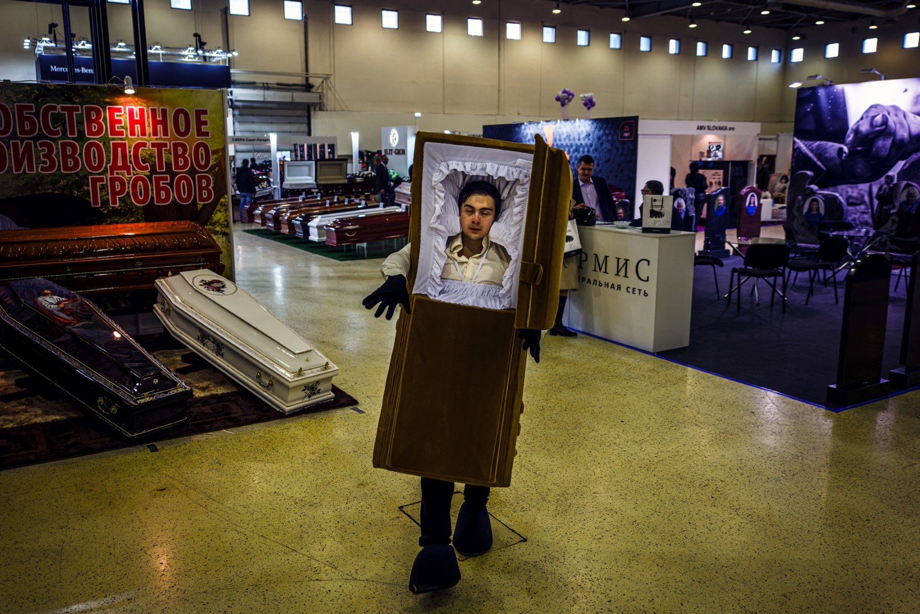 The funeral exhibition is a trade show pitching glitzy funeral options on grim significance in Russia. It is a joint project of the Russian NECROPOL trade fair and the Italian TANEXPO.