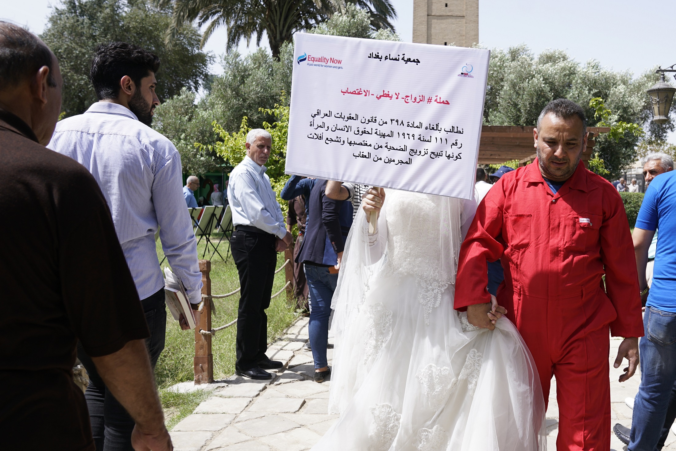 The protest play was against an obscure section of the Iraqi penal code known as Article 398. This is the clause that allows a rapist to escape imprisonment or other punishment so long as he marries his victim.