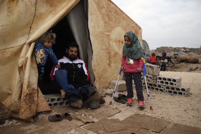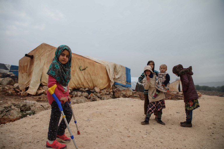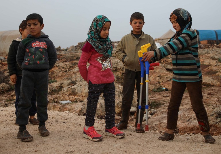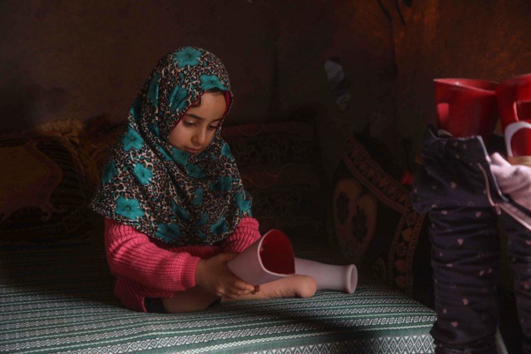 Eight-year-old Maya Merhi had to struggle around a Syrian displaced persons camp on artificial limbs made of plastic tubing and tin cans.