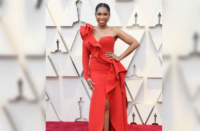 Another Lebanese red carpet mainstay was also spotted at the show — singer and actress Jennifer Hudson chose a red hot gown by Elie Saab Couture, complete with an oversized asymmetrical frill running from one shoulder to her waist and a modest slit.