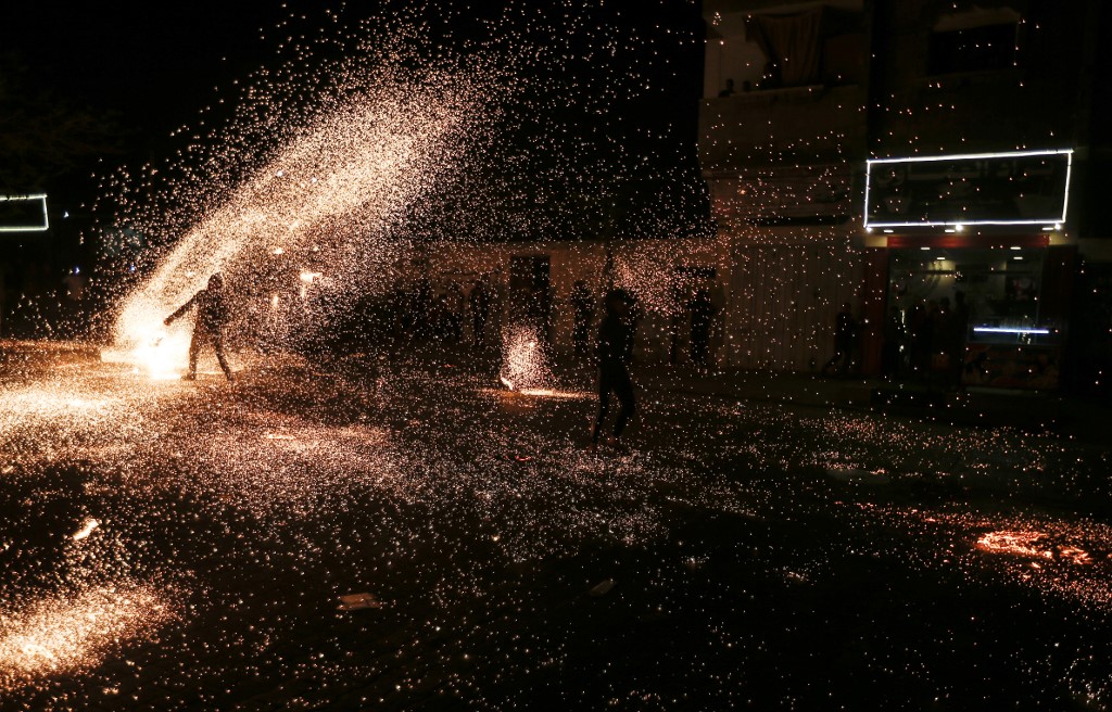 A Palestinian youth swings a homemade sparkler firework as people celebrate on a night of the Muslim holy month of Ramadan in Rafah refugee camp, in the southern Gaza Strip, on May 4, 2020. MA Palestinian youth swings a homemade sparkler firework as people celebrate on a night of the Muslim holy month of Ramadan in Rafah refugee camp, in the southern Gaza Strip, on May 4, 2020. A Palestinian youth swings a homemade sparkler firework as people celebrate on a night of the Muslim holy month of Ramadan in Rafah refugee camp, in the southern Gaza Strip, on May 4, 2020. MAHMUD HAMS / AFPMAHMUD HAMS / AFPAHMUD HAMS / AFP