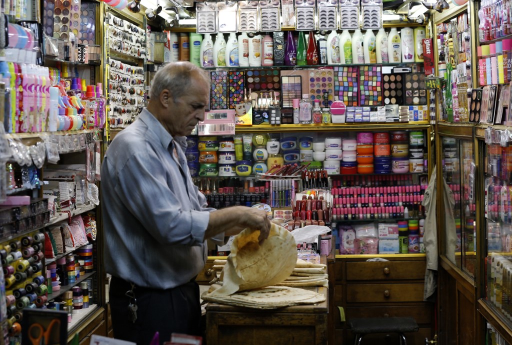 A merchant prepares lunch inside his shop at the Bzourieh market in the centre of the Syrian capital Damascus . The declining value of the pound is a sure sign of Syria's ailing economy. LOUAI BESHARA / AFP