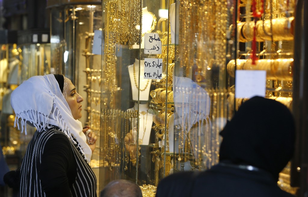 Women gaze at the window of a jewelry shop at the Bzourieh market in the centre of the Syrian. LOUAI BESHARA / AFP