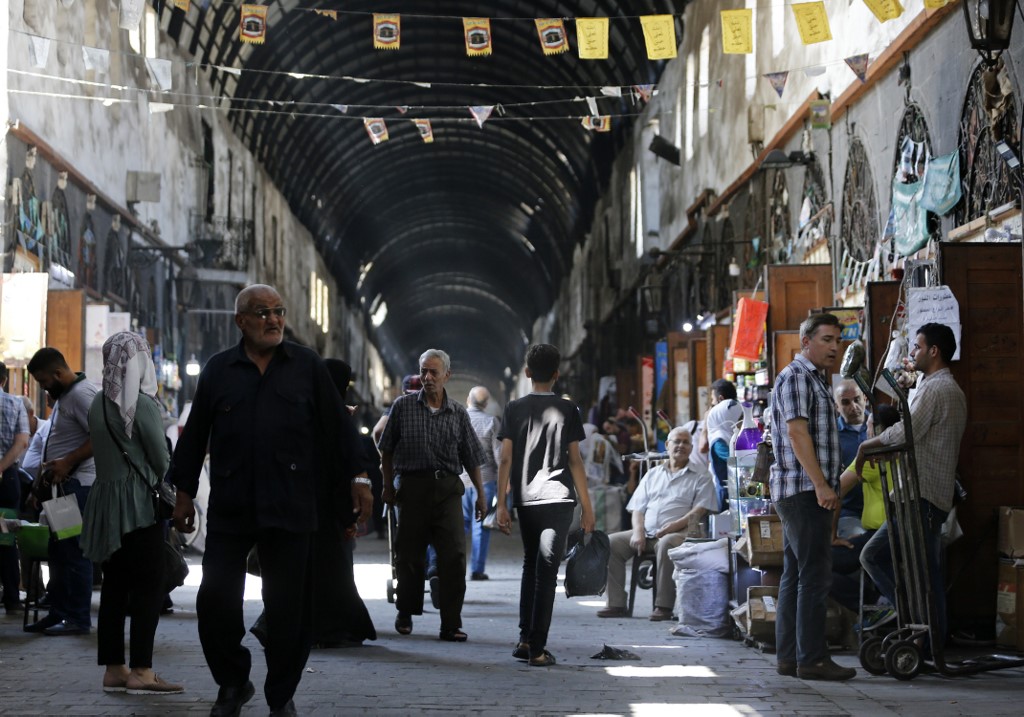 Shoppers walk through the Bzourieh market in the centre of the Syrian capital Damascus. LOUAI BESHARA / AFP