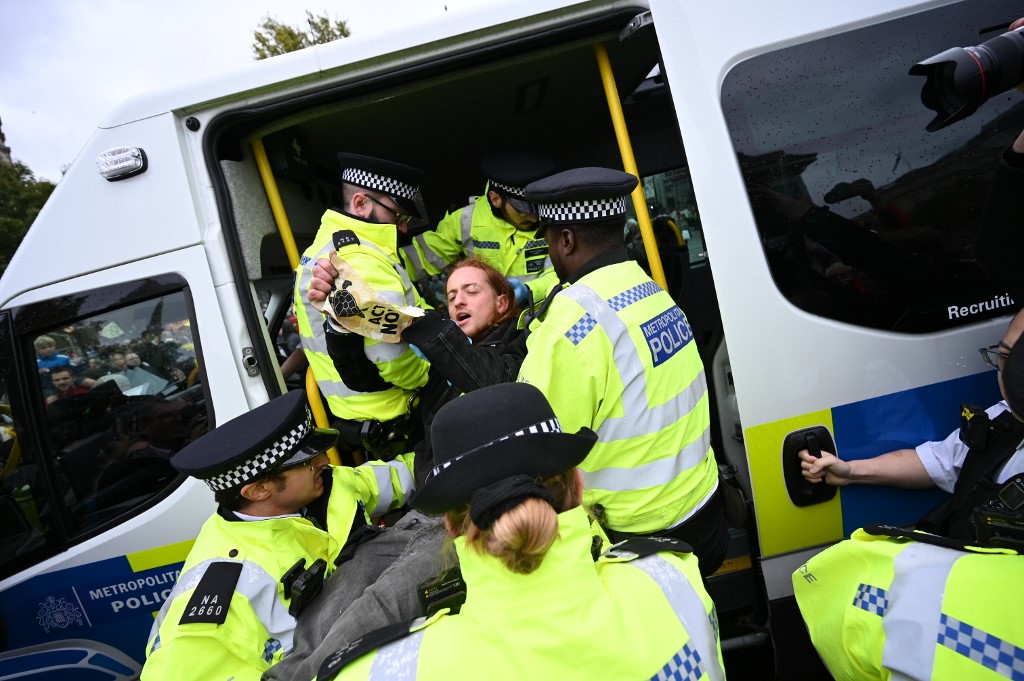 In London, police detained over 135 protesters as Trafalgar Square was shut down. However, in Vienna, protesters blocking roadways were carried off by police.