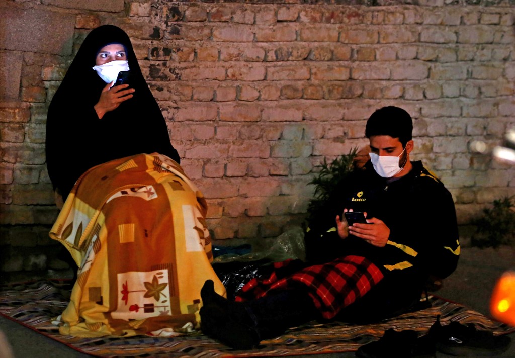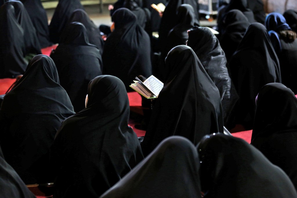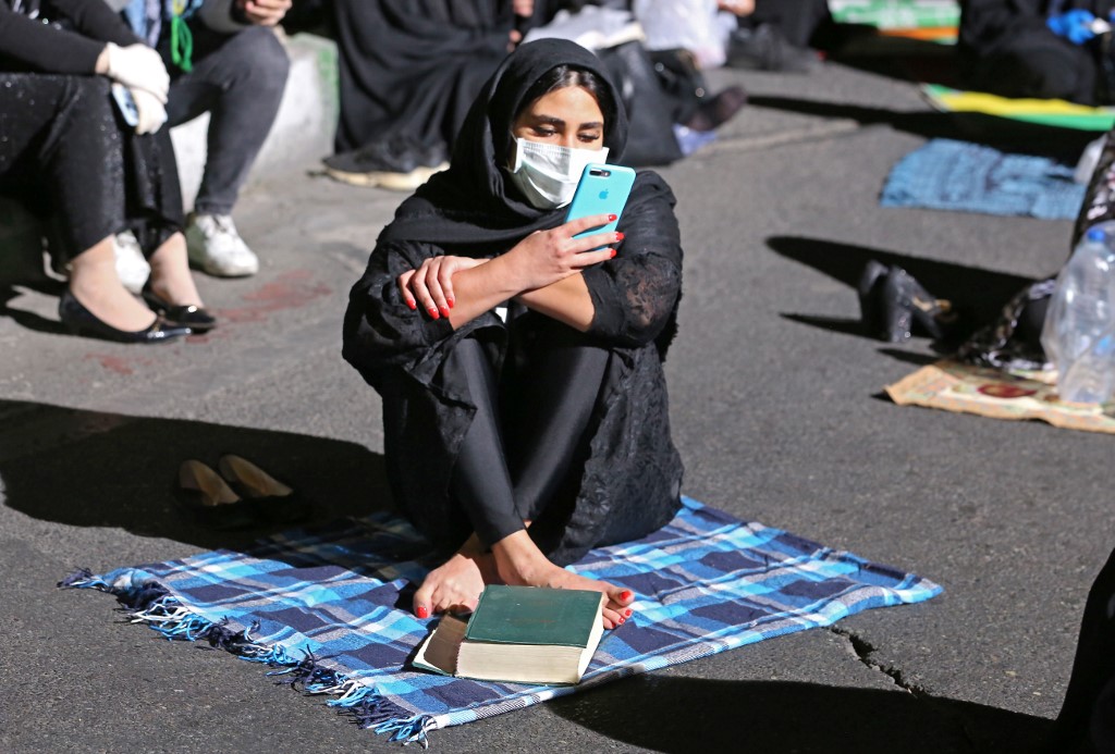The mask-clad faithful for the most part adhered to social distancing guidelines as they sat in designated areas of Reihanat al-Hussein mosque, in west Tehran.