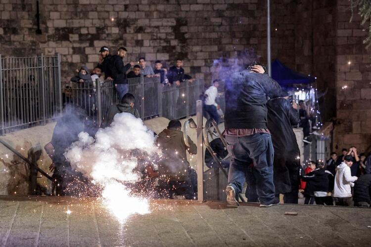 Israeli police and Palestinian protesters have been confronting one another outside the Damascus Gate in Jerusalem's Old City in renewed tensions during Ramadan. Israeli police arrested, beat and fired crowd-control munitions at Palestinians who police said were throwing stones. Palestinians have been protesting nightly around Jerusalem since April 2.