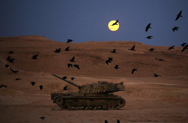 A picture taken on June 23, 2013 shows a full moon rising the "Judean Desert" in the Israeli occupied Palestinian West Bank.