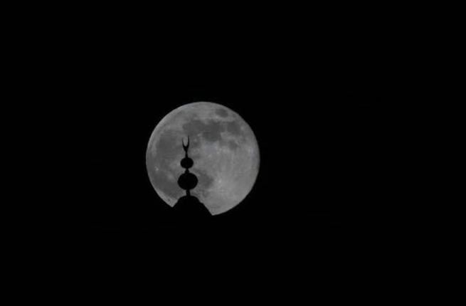 A supermoon appears behind the Minaret of Mohamed Ali Mosque in Islamic Cairo, Egypt.