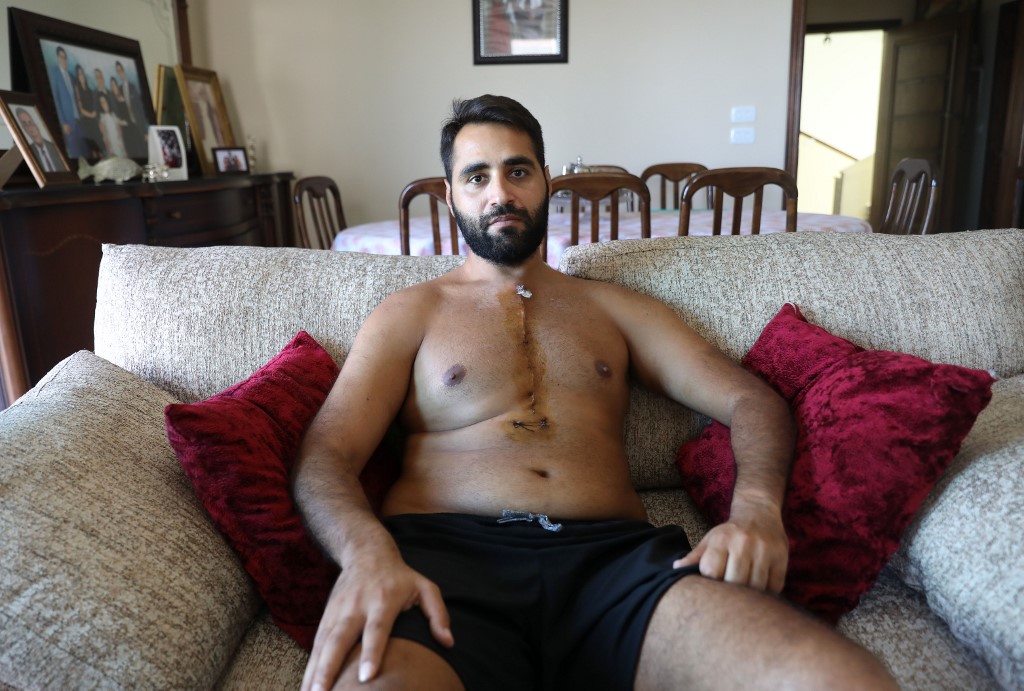 Firas Hamdan, a 33-year-old Lebanese lawyer, displays his scar. ANWAR AMRO / AFP