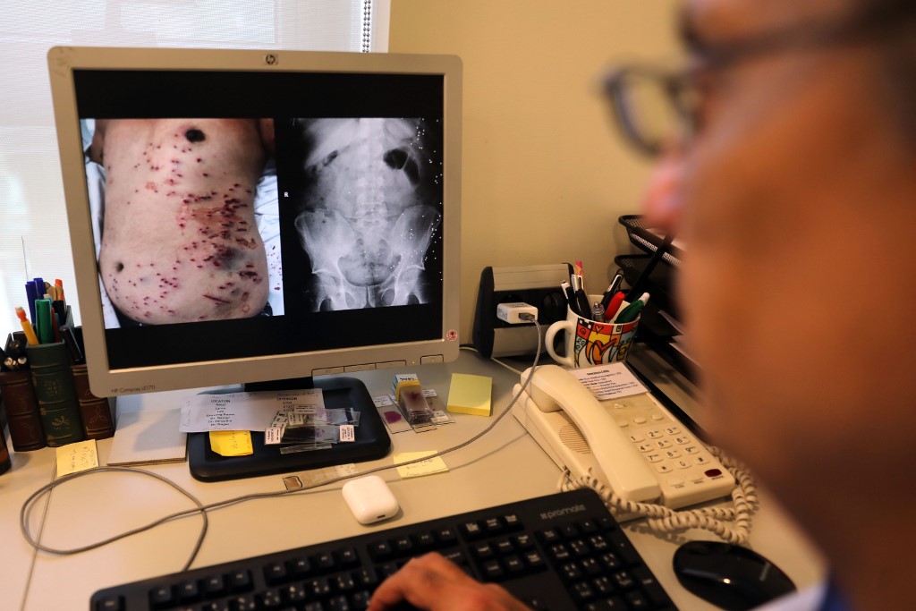 Lebanese doctor Selim Nasser displays the image of a patient's body. ANWAR AMRO / AFP
