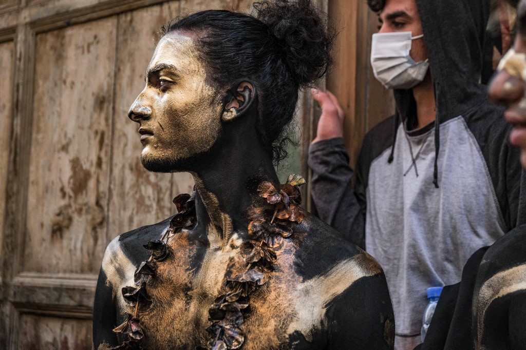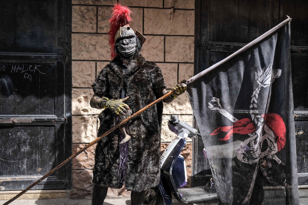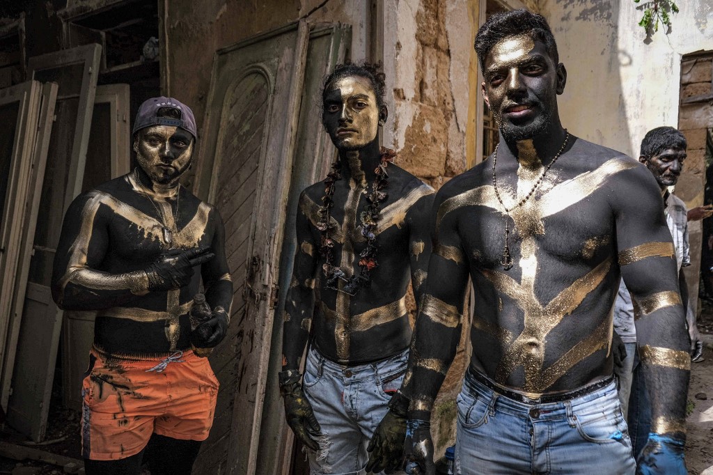 People donned bright, curly wigs and dark body paint for Zambo, a festival on the eve of the start of the Orthodox Christian period of Lent. The origins of the annual celebration remain unclear and it only seems to take place in a seaside suburb of Tripoli, a Muslim-majority city with an Orthodox minority.