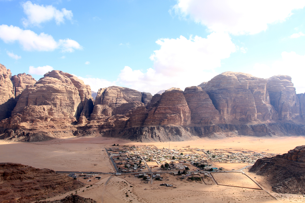 This area of Jordan is quite isolated and largely inhospitable to settled life. The only permanent inhabitants are several thousand Bedouin nomads and villagers. There is no real infrastructure, leaving the area quite unspoilt. Apart from the Bedouin goat tents, the only structures are a few concrete shops and houses and the fort headquarters of the Desert Patrol Corps.