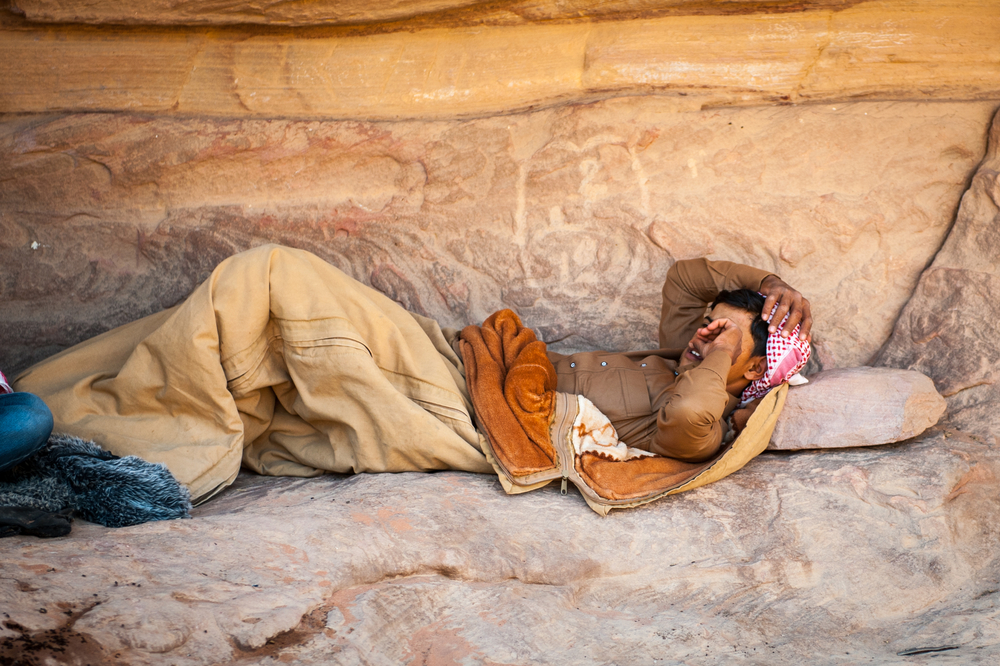 Bedouin sleeps near the rock in the desert of Wadi Rum. Bedouins are a part of a desert-dwelling Arabian ethnic group (Shutterstock/File Photo)