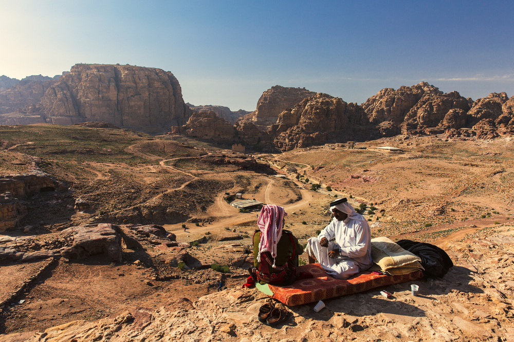 Tourist friends on a top of mountains in a desert. Sunset view. Nature. Tourist people enjoy a moment in a nature. Wadi rum national park - Jordan (Shutterstock/File Photo)
