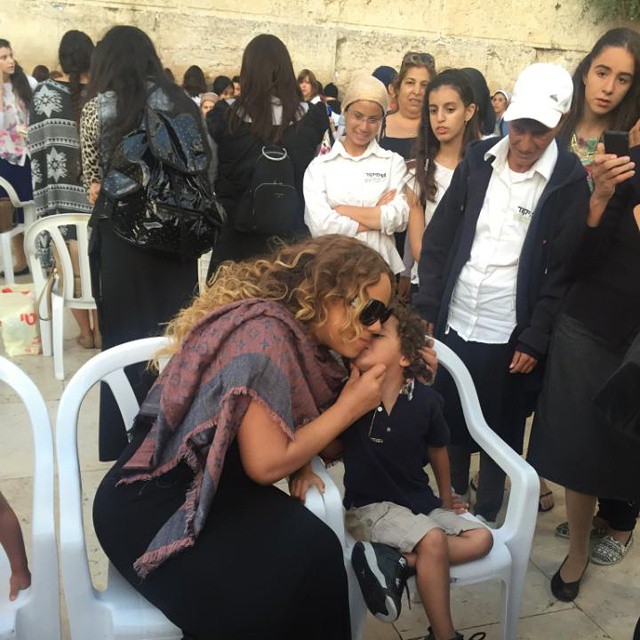 Mariah Carey with her son Roc at the Western Wall in Jerusalem. (Facebook)