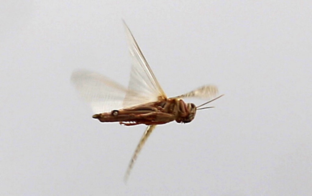 After becoming airborne, swarms of tens of millions of locusts can fly up to 150 km a day with the wind. Desert Locusts live about three months, and a female locust lays about 300 eggs. A very small swarm eats the same amount of food in one day as about 35 000 people.