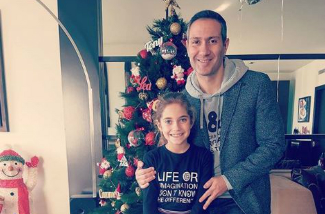 Lebanese stand up comedian and TV host Tony Abou Jaoudeh has been married to Lebanese beauty and TV anchor Carla Haddad for the past couple of years, yet there is another girl who seems to fight for Abu Jaoude's heart: his blue eyed daughter Liya.