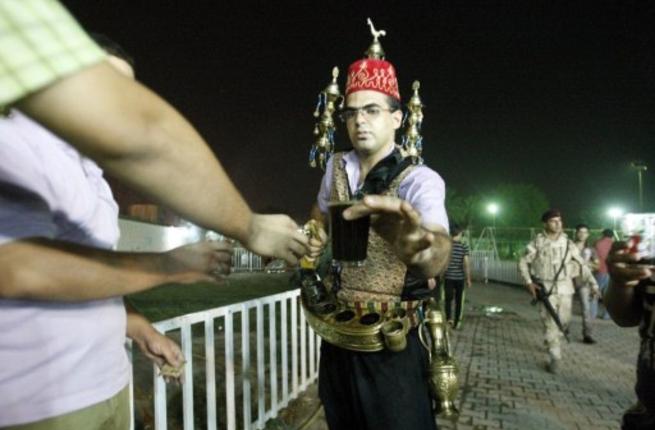 Iraq, Baghdad: An Iraqi serves Ramadan drinks (Jallab -a date juice, with grape molasses and rose water served with raw pine kernels), while mid-Ramadan news of 7 pulled from a south Baghdad, Sunni mosque, and killed execution-style breaks in this sacred month.