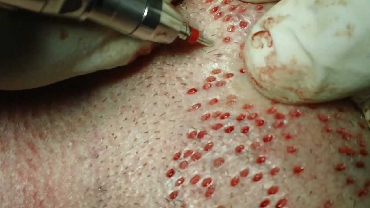 Another method is follicular unit extraction, where hairs are taken one-by-one with a 0.8 - 1.4 mm punch-like tool without cutting the skin. This involves nearly no recovery time, the patient can be back at work the next day.