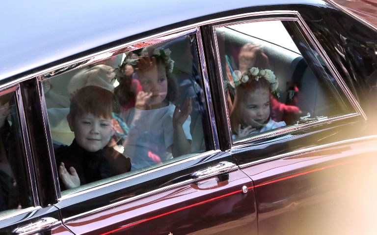 Prince Harry's niece and bridesmaid Princess Charlotte (R) arrives for the wedding ceremony of Britain's Prince Harry, Duke of Sussex and US actress Meghan Markle at St George's Chapel, Windsor Castle, in Windsor, on May 19, 2018. Andrew Matthew/ AFP