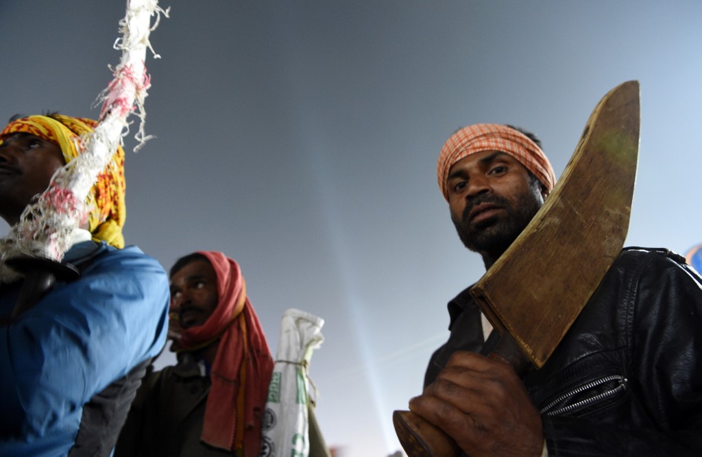 Hindu devotees carry their blades on the eve of the Gadhimai festival in Bariyarpur, south of the Kathmandu on December 2, 2019. Thousands of Hindu devotees gathered in southern Nepal on December 2 ahead of a festival believed to be the world's biggest ritual animal slaughter, despite court orders and calls by animal activists to end the event. The sacrifices, set to begin on December 3, take place every five years in Bariyarpur village close to the Indian border, in honour of the Hindu goddess of power. PRAKASH MATHEMA / AFP