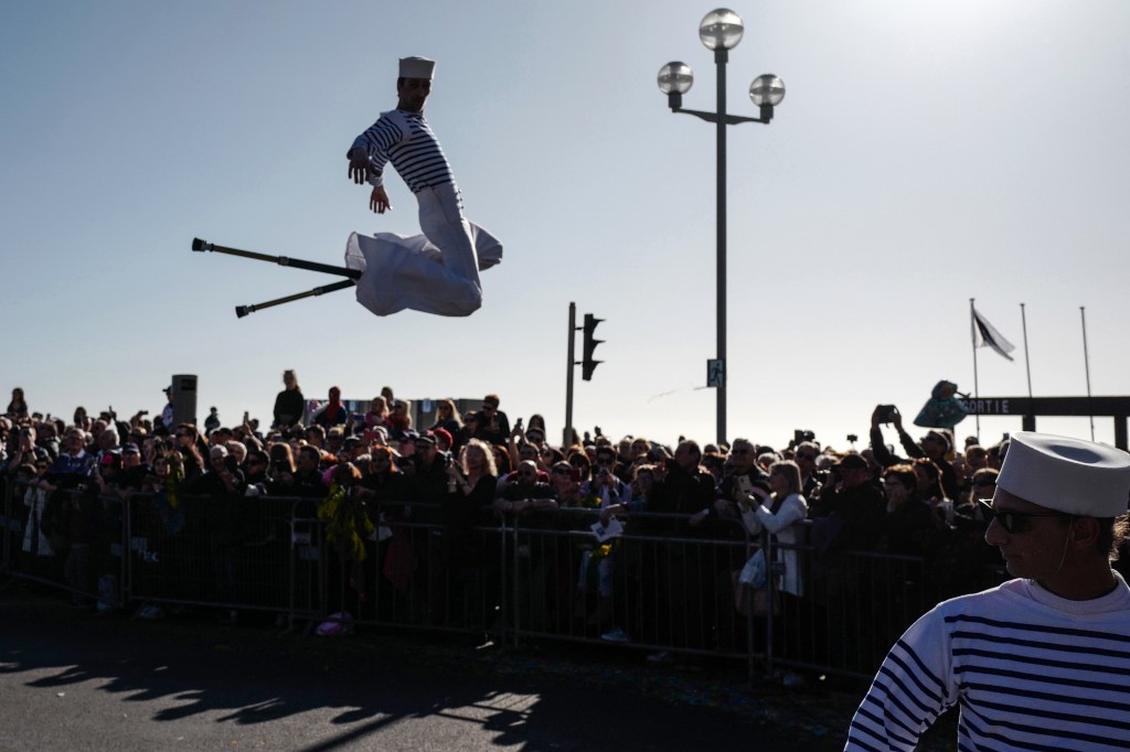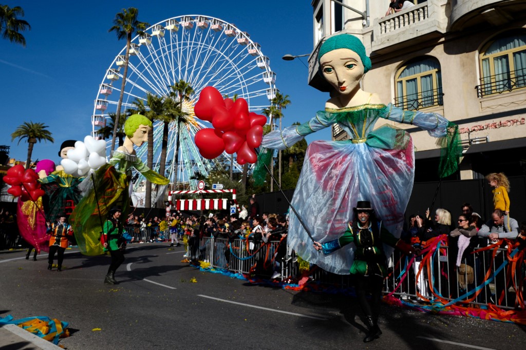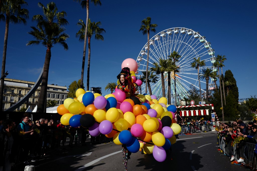 Participants take part in the 136th Nice Carnival parade which celebrates this year the 'Fashion King' in Nice, southeastern France, on February 15, 2020. The carnival runs from February 15 to February 29, 2020. VALERY HACHE / AFP
