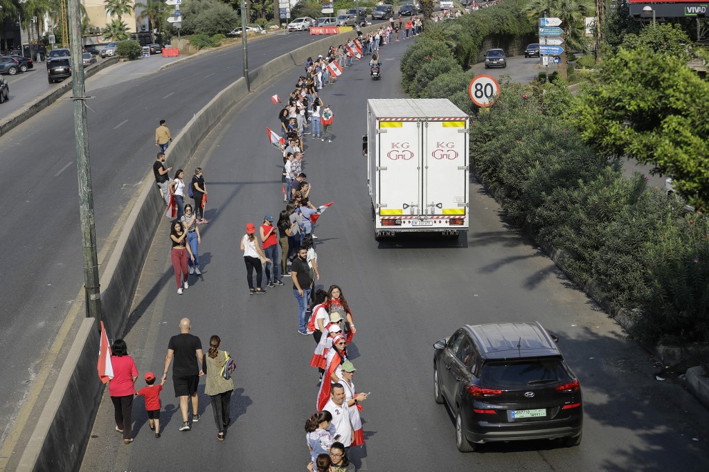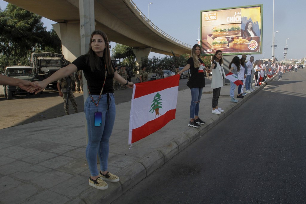 Tens of thousands of Lebanese Protesters cross hands on Sunday, October 27th to create a human chain connected the country's north and south.