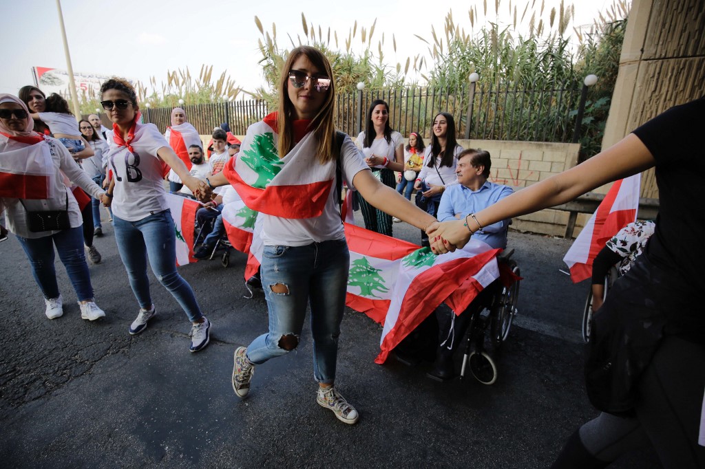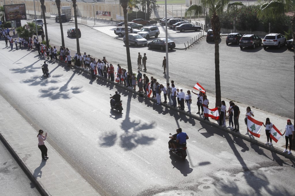 People joined hands from Tripoli to Tyre, a 170-kilometre of human chain running through the main protest hub in the capital, Beirut.