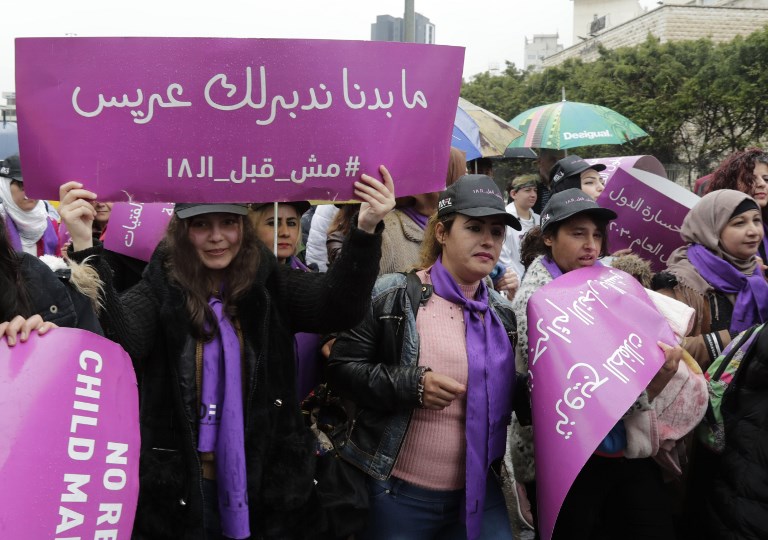 Hundreds in Beirut rallied, Saturday March 2, 2019  in face of child marriages, calling authorities to ban unions below the age of 18. In Lebanon some faiths allow girls to be wed at 14.