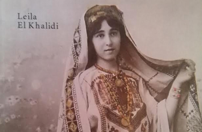 A Palestinian girl wears a traditional embroidered gown and headdress on the book cover of “Art Of Palestinian Embroidery“ by Laila El-Khalidi. (Laila El-Khalid, Saqi Books)