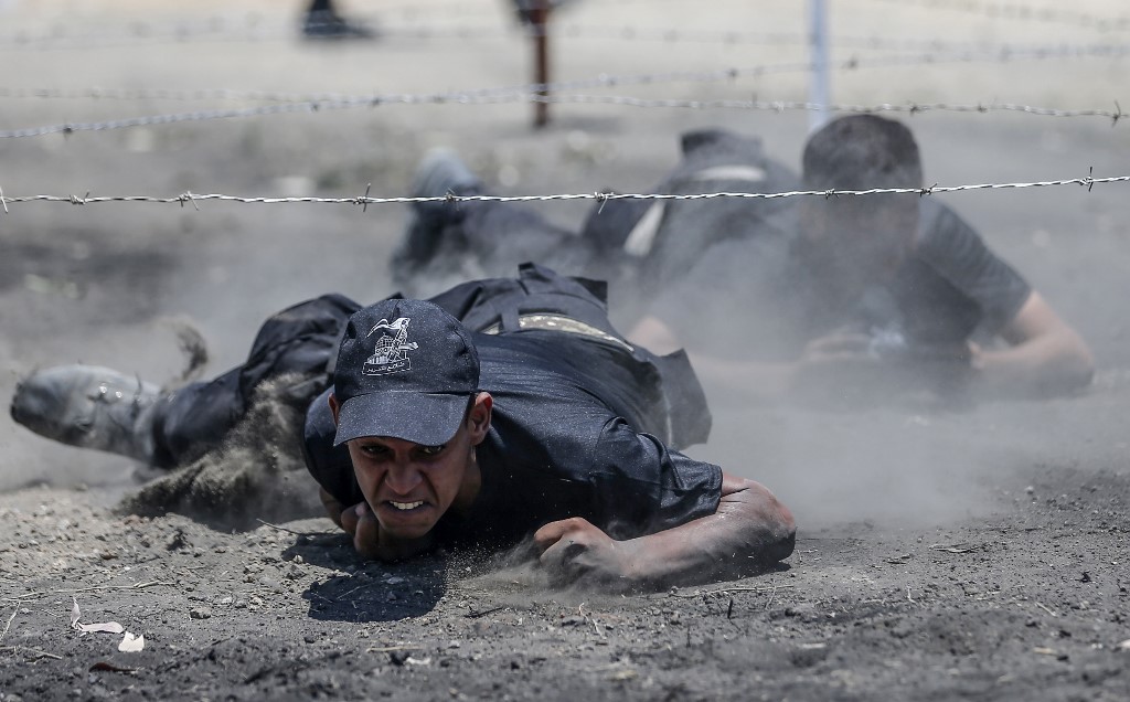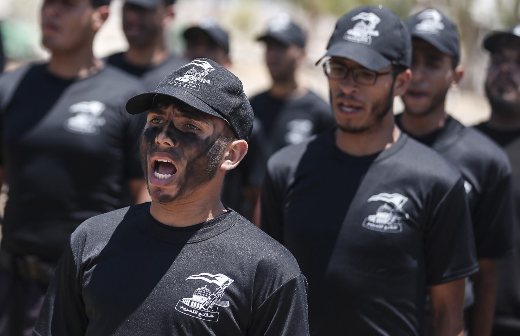 Palestinian military cadets take part in a training session organised by Hamas' military wing, the Ezzedin al-Qassam Brigades, in Gaza City on July 20, 2019.  MAHMUD HAMS / AFP