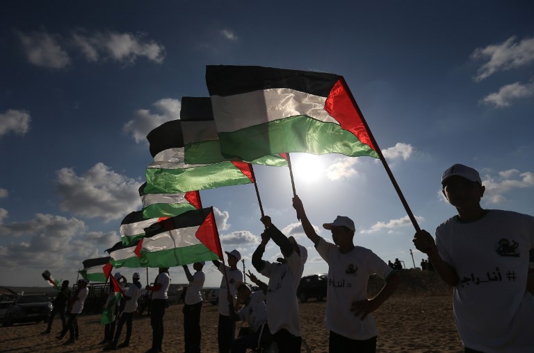 The following pictures show a different more jovial, happy sight of Palestinians, as a fun people, who love life, are sports-conscious, and have deep aspirations. Their presence here are at the sight of pitched up tents in southern Gaza, near the border with Israel, to demonstrate the right of Palestinian refugees to return to the villages and towns they were expelled from when Israel was established in 1948. The tents are part of a six-week campaign ending on 15 May, protesting the 70th anniversary of its creation.