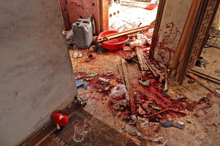 EDITORS NOTE: Graphic content / Syrian civil defence search on February 3, 2022 the scene following an overnight raid by US special operations forces against suspected jihadists in Atme, in Syria's northwestern province of Idlib which left at least nine people dead, including three civilians. (Photo by Abdulaziz KETAZ / AFP)