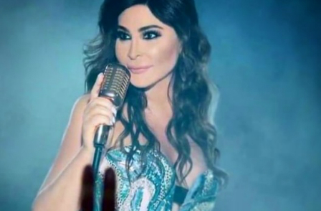 The album's photoshoot has Elissa in two different looks on stage, in one of them she is wearing a long open legged maxi green dress and the other has her sporting a short blue and silver glittery dress that got everyone talking.