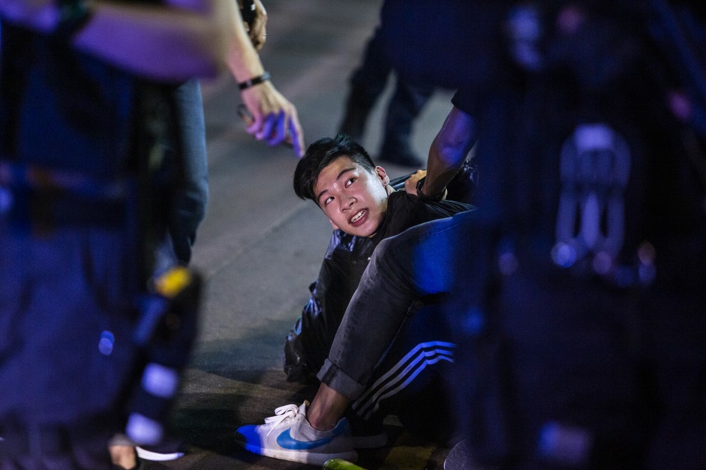 Police officers arrest a pro-democracy demonstrator (C) during a pro-democracy protest calling for the city's independence in Hong Kong on May 10, 2020. ISAAC LAWRENCE / AFP