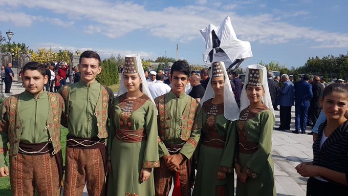 Yazidis in Armenia are dressed in traditional clothes to celebrate the opening of the new Yazidi Temple in the village of Aknalich (Twitter)
