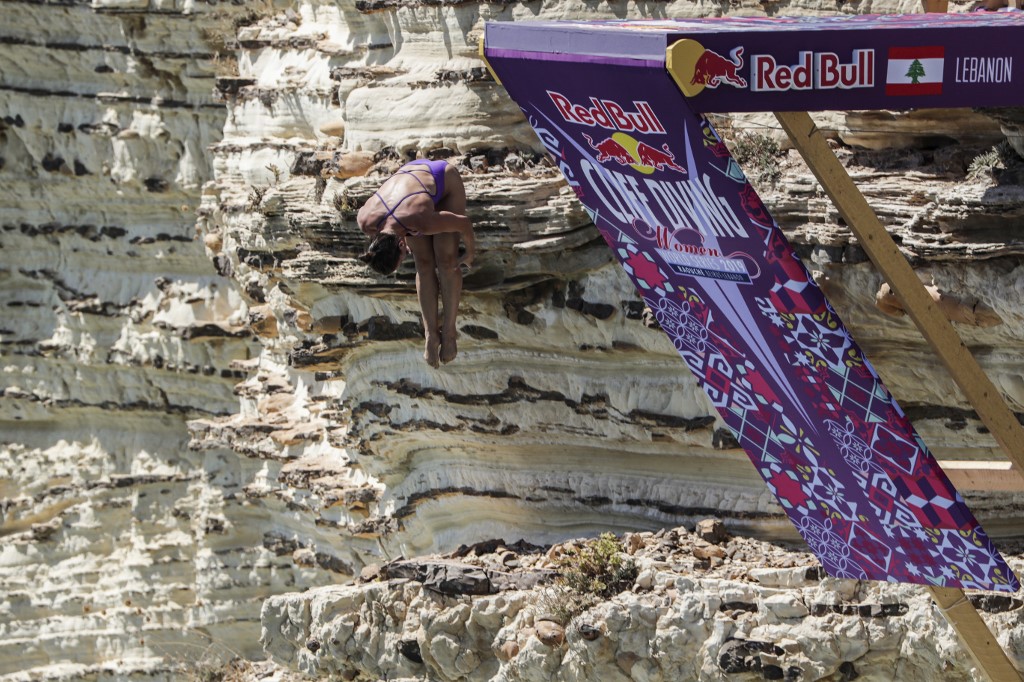 In Lebanon, platforms were set up on the side of the rock formation, and divers jumped from as high as 27 meters into the sea below.