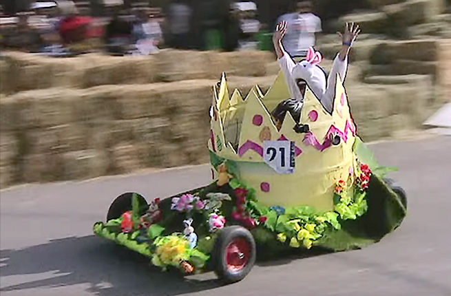 Reach the finish line and people cheer. Have a spectacular wipe-out and people cheer even louder. Anything can happen when teams of so-called “grown-ups” hurl themselves down a steep road in bizarre DIY vehicles.