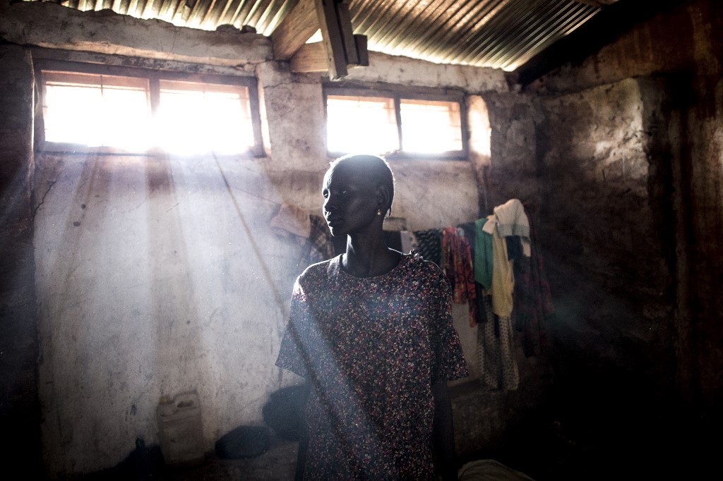 Elizabeth, a South Sudanese Refugee, poses inside a refugee transition camp in Aru for South Sudanese who have just arrived in the Democratic Republic of the Congo. JOHN WESSELS / AFP