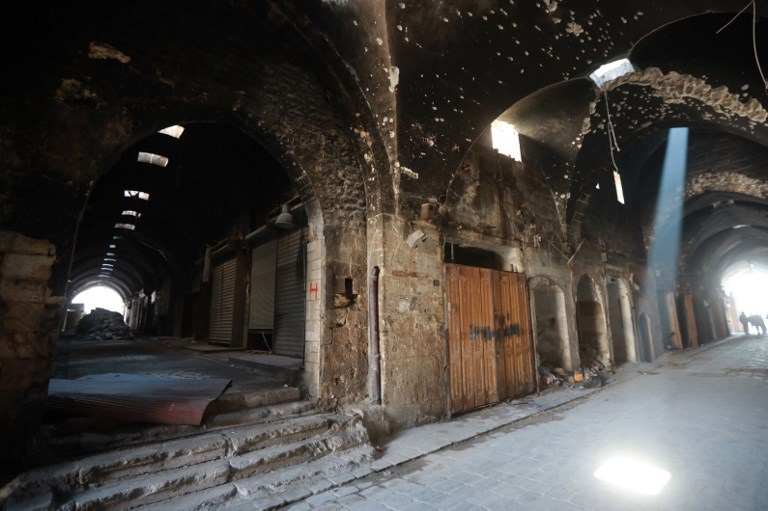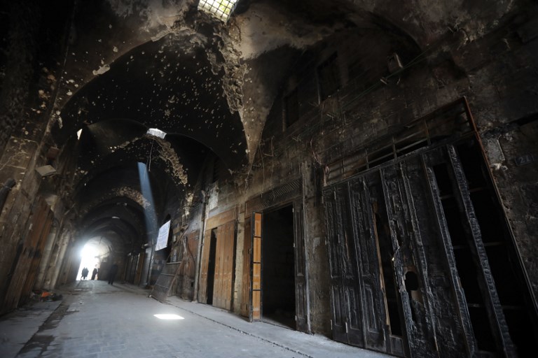 The Saqatiya souk covers an area of more than 1,500 square meters and used to house more than 50 shops before Syria's conflict landed in Aleppo in 2012.