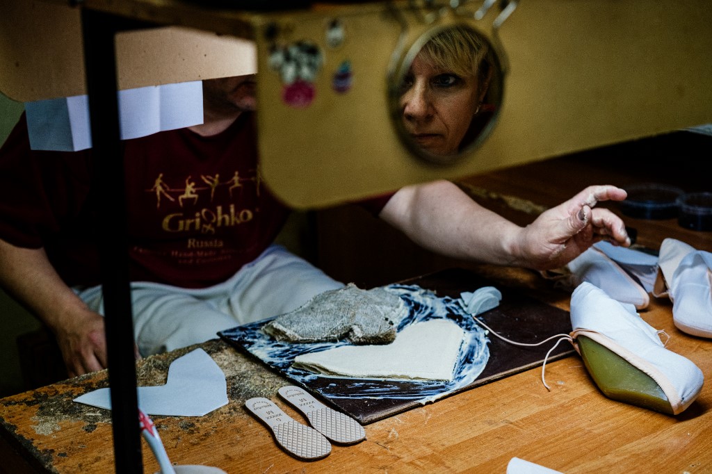 Grishko’s master shoemakers work in silence as they produce 32,000 to 37,000 pairs of pointes per month, using only natural materials.