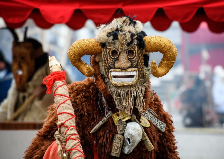 Performers in scary masks entertain the public during the Shrovetide spring festival outside the Kremlin in Moscow on March 01, 2019. Mladen ANTONOV / AFP