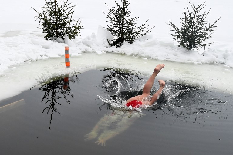 Diving into a long whole cut in the ice, Viktoria Tsuranova swims a few strokes and flashes a smile at the photographer capturing the moment for her Instagram account, according to AFP.