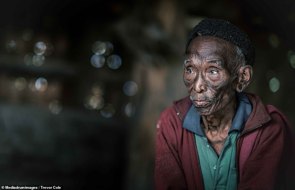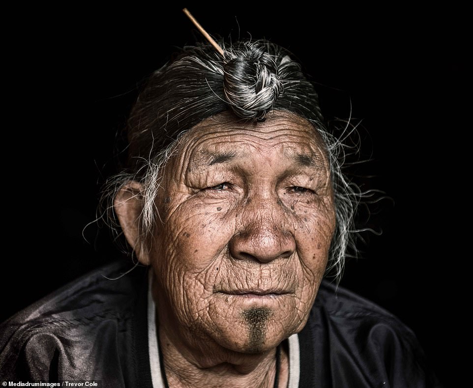 The travel photographer travelled deep into the heart of mountainous Nagaland, India, to capture the striking images. The man above wears a jacket as his long, grey hair is pulled into a bun sitting at the top of his head. (Mediadrumimages/ Trevor Cole)