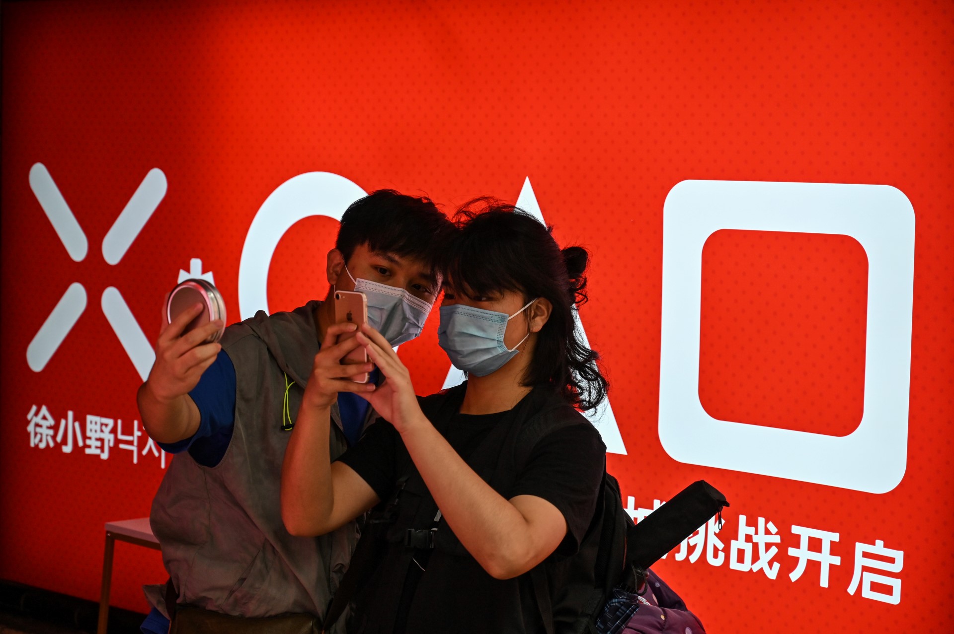 This photo taken on October 12, 2021 shows customers taking photos of a dalgona, a crisp sugar candy featured in the Netflix series Squid Game, in Shanghai. (Photo by Hector RETAMAL / AFP)