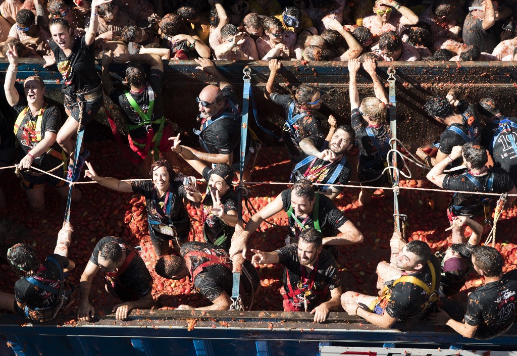 More than 20,000 people have gathered Bunol to take part in the epic food fight at the annual La Tomatina festival on Wednesday, Aug. 28, 2019.