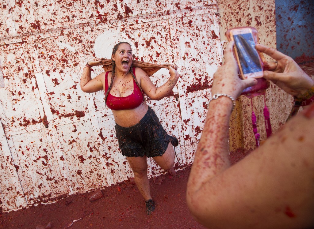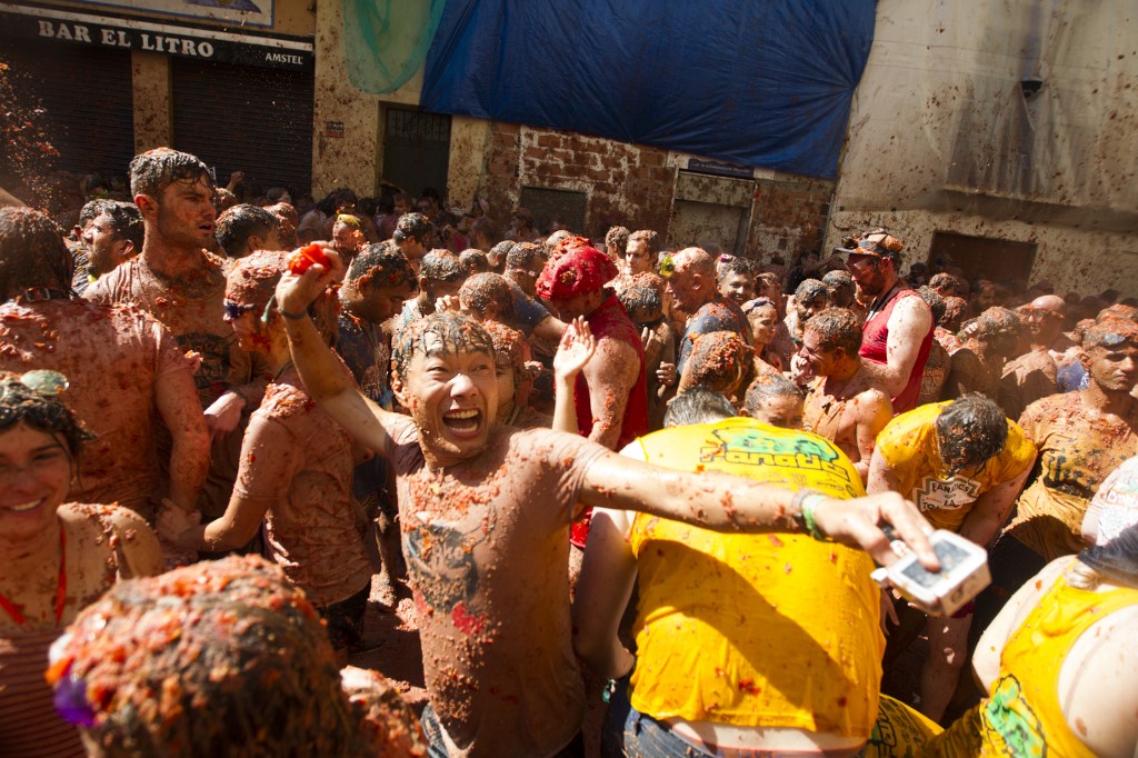 The iconic fiesta, which is billed at "the world's biggest food fight" has become a major draw for foreigners, in particular from Britain, Japan and the United States. JAIME REINA / AFP